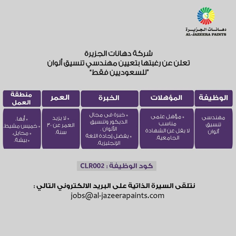 وظائف شركات | شركة دهانات الجزيرة | تعلن عن وظائف شاغرة للرجال و النساء في المنطقة الجنوبية